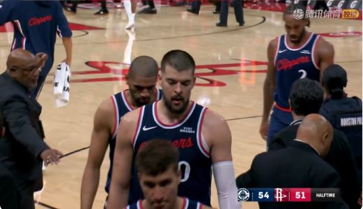 尽管上半场快船全队的篮板数仅13个,火箭全队的一半,然而一看比分,快船54-51,还赢着火箭3分。