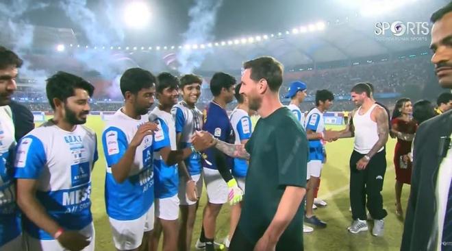 梅西开启了印度行的第二站海得拉巴,与第一站相比,此行还是颇为顺利的,他在球场内与小球员、当地官员、球迷一起互动,并未发生骚乱。